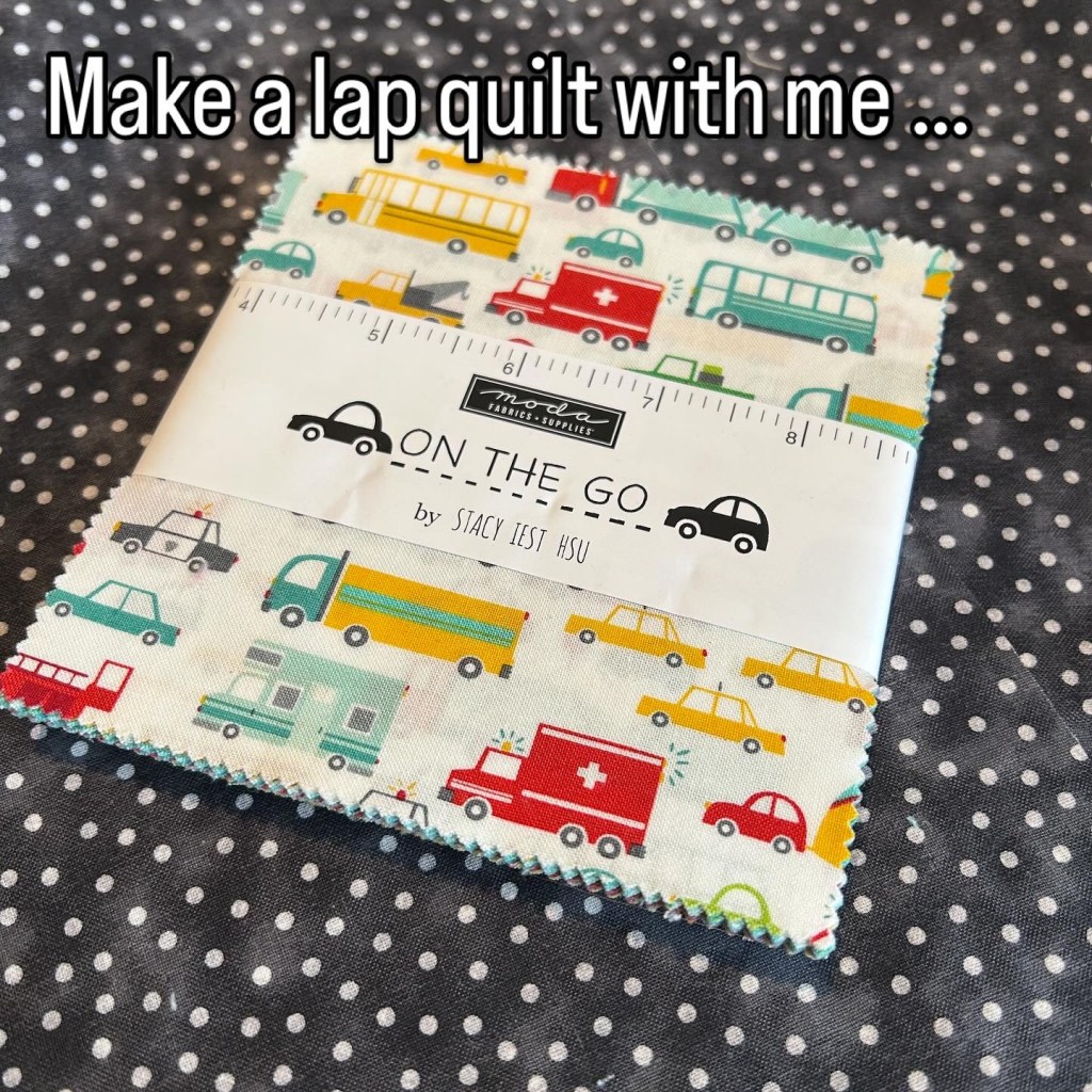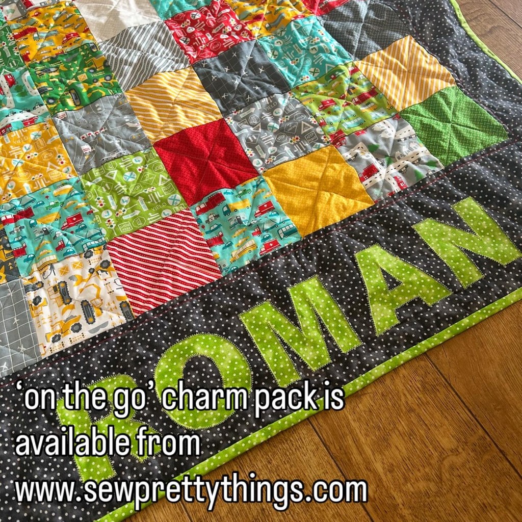 Make a laptop quilt with me using the ‘On the Move’ charm pack, Bondaweb and wonder clips.