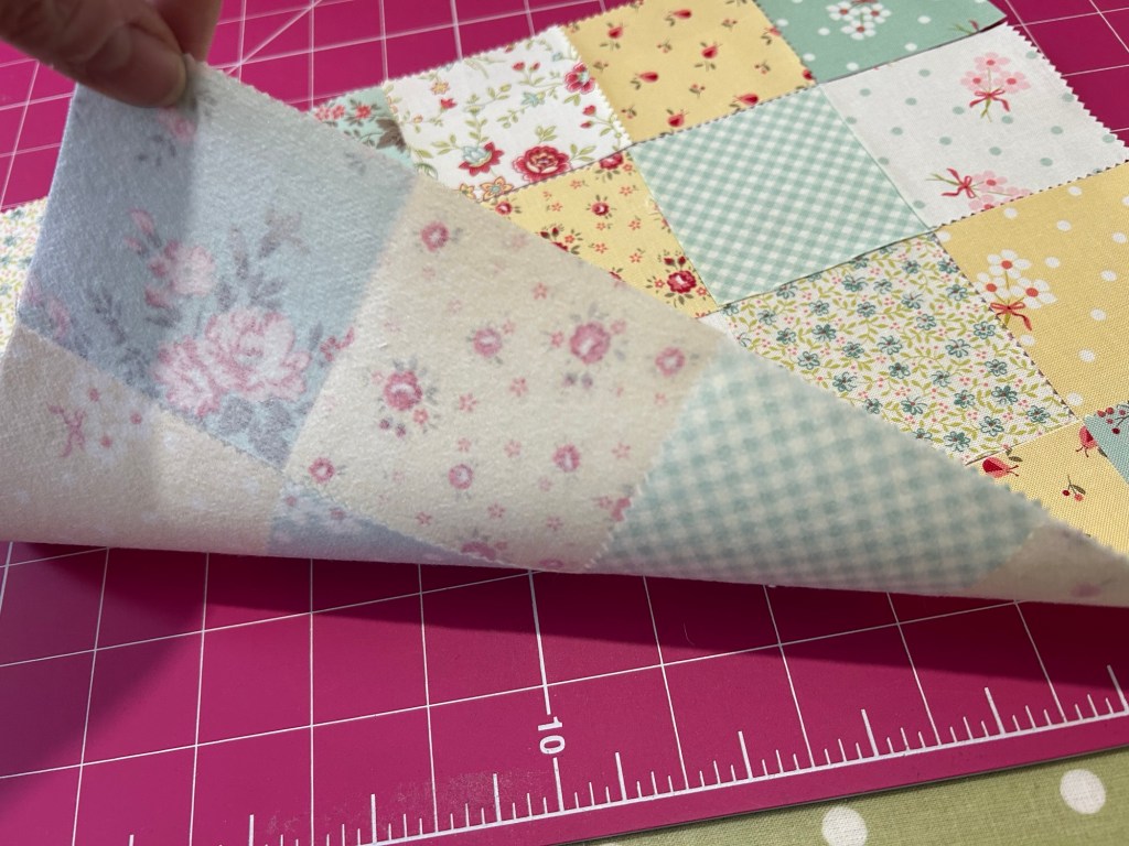 Making a patchwork from a charm pack is super easy with the help of some lightweight iron on interfacing.